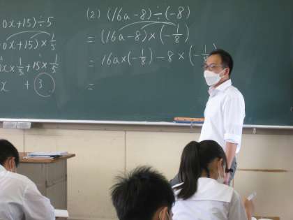式の計算について 1−2数学 公開日 2022/07/14 更新日 2022/07/14 学び合い認め合う学習 7月14日(木) 2限 1−2数学の授業風景です。みんなで式の計算に取り組んでいます。大分計算するスピードも上がってきました。この調子でがんばって!