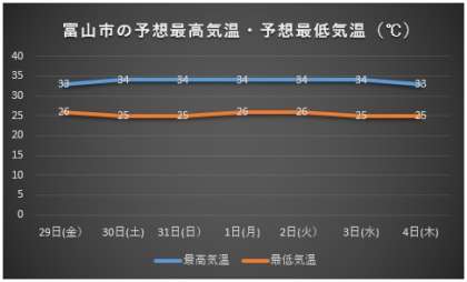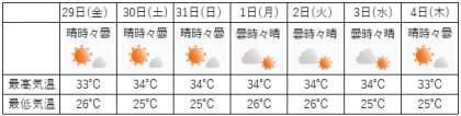 また、気象庁によると7月29日(金)以降、最高気温が33度を超える真夏日、最低気温が25度を超える熱帯夜が1週間程度続くようです。状況に応じた適切なマスクの着用を心がけながら、熱中症防止にも十分に気を配りましょう。