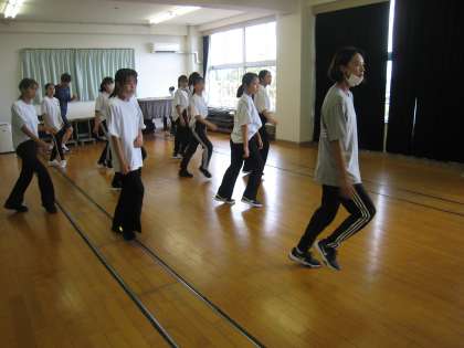 ダンス部がんばっています 公開日 2022/08/10 更新日 2022/08/10 部活動 8月10日(水) ダンス部の活動風景です。MARIE先生のご指導のもと、今世間で流行している曲に合わせてみんなで踊っています。このダンスは10月に行われる学習発表会で披露する予定です。お楽しみに!