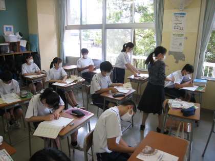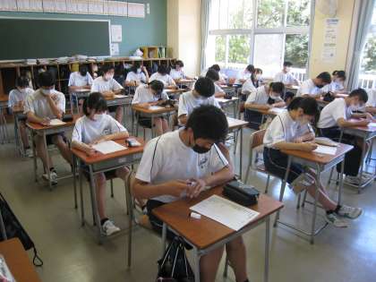 学級活動の様子 その2 公開日 2022/08/29 更新日 2022/08/29 学び合い認め合う学習 8月29日(月) 3限 2学期の個人目標(生活・学習)を書いています。10月に行われる合唱コンクールの係決めをしている学級もありました。生徒が気持ちを新たにしてやる気に満ちていることが伝わってきました。力を合わせてがんばってきましょう! (写真上:3−1 中:3−2 下:かがやき級)