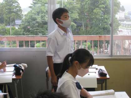 不等式について 1−1数学 公開日 2022/09/01 更新日 2022/09/01 学び合い認め合う学習 9月1日(木)4限 1−1数学の授業風景です。不等式について学習しています。先生の質問に対して積極的に答えていました。すばらしい!
