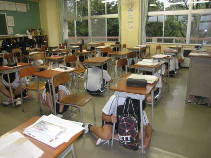 防災訓練(9月1日は防災の日) 公開日 2022/09/01 更新日 2022/09/01 その他 9月1日(木)終学活 本日は「防災の日」です。大きな地震を想定してシェイクアウト訓練が行われました。生徒はすばやく落ち着いて机の下に隠れることができました。この日を機会に常日頃から防災意識を高めていきましょう。