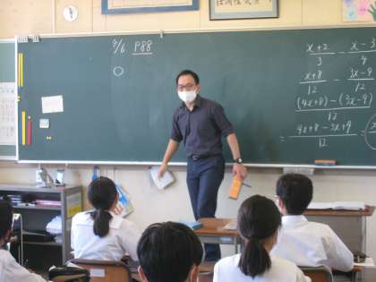 1−2数学の授業風景です。アルファベットの文字を使った計算について学習しています。みんな集中して計算をしています!