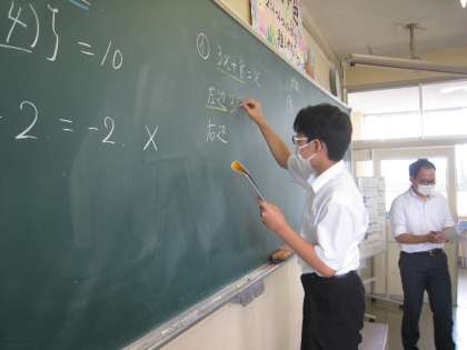 方程式の学習 1−2数学 公開日 2022/09/08 更新日 2022/09/08 学び合い認め合う学習 9月8日(木) 2限 1−2数学の授業風景です。方程式について学習しています。先生から「みんなきれいにノートを書いているね」と褒められていました!