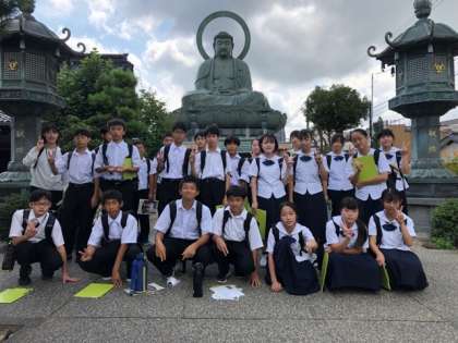 2組は高岡大仏に到着しました。クラス写真を撮ってそれぞれ見学を開始しました。