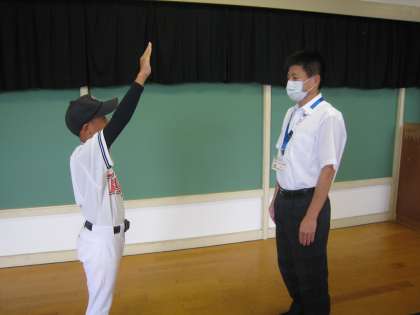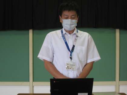市新人大会壮行会 その4 公開日 2022/09/14 更新日 2022/09/14 その他 9月14日(水) 5限 校長先生からは、あるスポーツ漫画の登場人物が語った名言『あきらめたらそこで試合終了ですよ』を挙げられ、「最後まであきらめず、自分たちの力を出し切ってほしい。この言葉はこれから進路を迎える3年生にも伝えたいです」とのお言葉を頂きました。 がんばろう!チーム月岡!! (写真上:選手宣誓 中:校長先生の激励 下:水泳部)