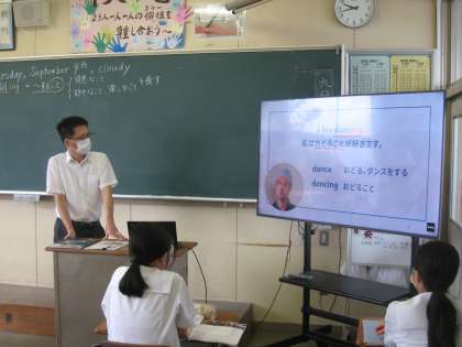 動詞+ingについて 1−2英語 公開日 2022/09/15 更新日 2022/09/15 学び合い認め合う学習 9月15日(木) 2限 1−2英語の授業風景です。動詞+ingの使い方について学習しています。TVモニタ−に合わせて発音練習もしていました。