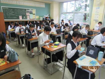 コロナ対策で黙食していますが、みんなうれしそうです。保護者の皆様、朝早くからお弁当を用意していただきまして、本当にありがとうございました。