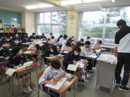 各教室の授業の様子です。本日は午前中は授業、午後は体育大会の練習になります。しっかり落ち着いて学習するときと、元気よく活発に団練習するときのメリハリを大事にしています。