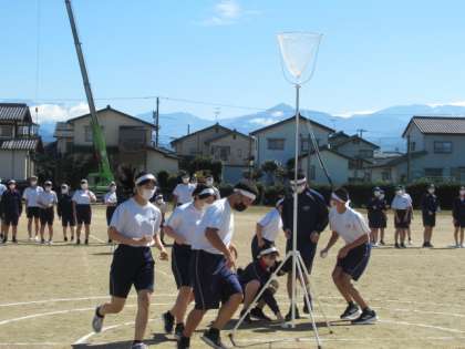体育大会の練習 その2 公開日 2022/09/29 更新日 2022/09/29 その他 9月29日(木) 5,6限 競技練習や各団が応援練習をしています。この短期間でよくやり方を覚えていて、感心しました。リーダーの熱心な声かけ、それに応える団員達・・・。期待大!!