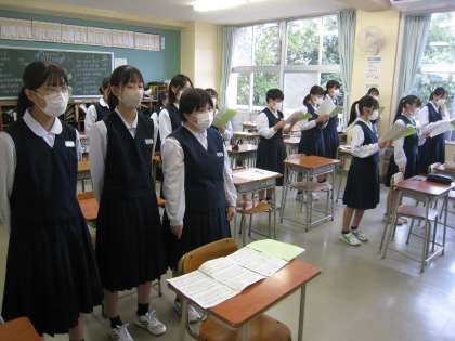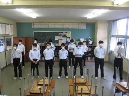 合唱コンクールの練習 公開日 2022/10/12 更新日 2022/10/12 その他 10月12日(水) 3限 中間考査2日目が終わり、その後各クラスで合唱コンクールの練習が行われました。どのクラスも気合いが入っています!本日午後からは各教科教員の研究大会があり、生徒は放課となります。テストの疲れをとって、各自自宅で宿題等に取り組んでください。 (写真上:3−2 中、下:3−1) ※茶道部、ダンス部は学習発表会に向けた練習が午後からあります。がんばってください。