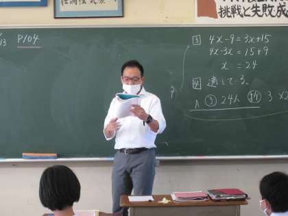 方程式を解いています 1−1数学 公開日 2022/10/13 更新日 2022/10/13 学び合い認め合う学習 10月13日(木) 4限 1−1数学の授業風景です。みんなで方程式を解いています。授業中の態度や集中力がすばらしい!