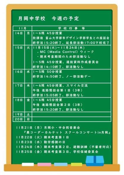 11月14日(月)〜11月20日(日)の予定です。