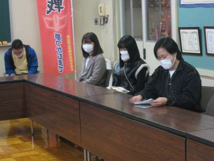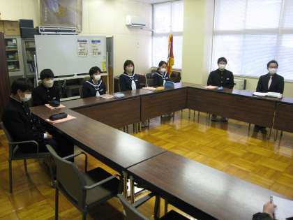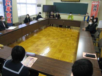 富山大学生との懇談会 その1 公開日 2022/11/14 更新日 2022/11/14 その他 11月14日(月) 放課後 月岡地域の活性化に向けたプロジェクトの一環で、本校生徒会執行部と富山大学都市デザイン学部の学生が懇談会を行いました。