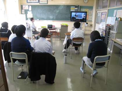 スマイル交流会 やまびこ級、かがやき級 公開日 2022/11/17 更新日 2022/11/17 学び合い認め合う学習 11月17日(木) 午前 本日、やまびこ級・かがやき級の生徒が市内中学校の生徒とオンラインで交流会を行いました。お互いに楽しく学校紹介をしています。