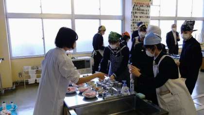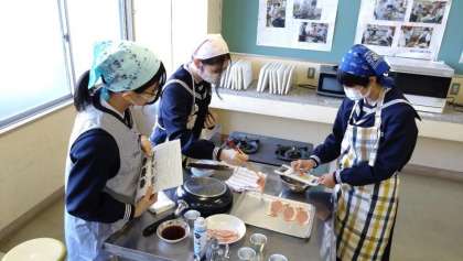 調理実習 3−2家庭科(その1) 公開日 2022/12/09 更新日 2022/12/09 学び合い認め合う学習 12月9日(金) 2限 3年2組、家庭科の授業の様子です。今日は待望の調理実習で、「豚肉の生姜焼き」を作りました。前時までの学習内容、家庭学習での動画視聴による振り返りを基に、班のメンバー全員で協力しながら楽しく実習に取り組みました。手作りの「豚肉の生姜焼き」の味は格別でした。次は、ぜひ家庭でも・・・。
