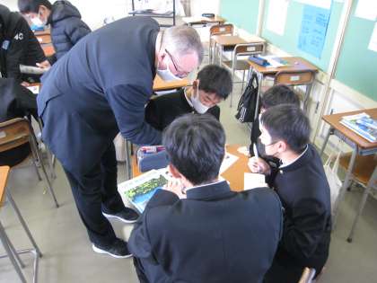 英会話の学習 1−1英語 公開日 2022/12/19 更新日 2022/12/19 学び合い認め合う学習 12月19日(月) 3限 1−1英語の授業風景です。ALTの先生と一緒に英会話の練習をしています。みんな楽しそうです!