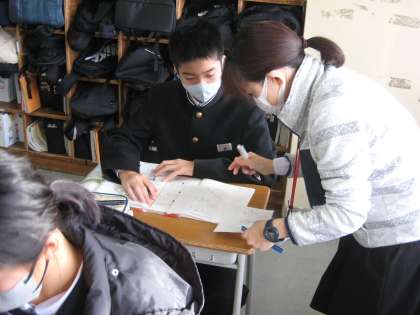 凸レンズの仕組み 1−1理科 公開日 2022/12/21 更新日 2022/12/21 学び合い認め合う学習 12月21日(水) 2限 1−1理科の授業風景です。凸レンズの光の進み方について学習しています。定規を使って丁寧に光の軌跡をノートに書いています。