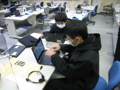 コンピュータ部の活動の様子です。2月に行われる新入生説明会での部活動紹介に使われる動画を作成しています。新入生(小学6年生)のみなさん、楽しみにしていてくださいね!