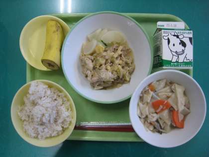 今日の給食 公開日 2023/01/11 更新日 2023/01/11 その他 1月11日(水) 今日の給食メニューは、 ・麦ごはん ・牛乳 ・塩だれ豚丼 ・かぶの色どり ・ワンタンスープ ・バナナ です。 今日から給食が始まりました。しっかりと食べて健康な体をつくりましょう。いただきます!