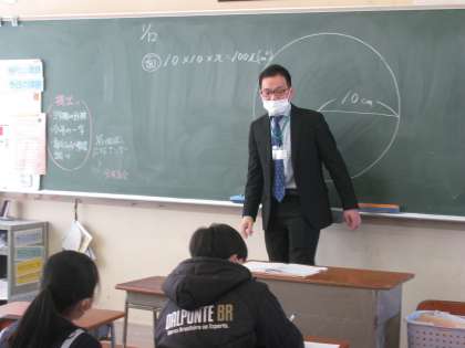 円の面積 1−1数学 公開日 2023/01/12 更新日 2023/01/12 学び合い認め合う学習 1月12日(木) 4限 1−1数学の授業風景です。円の面積を求めています。真剣な態度で問題を解いていてすばらしいです!