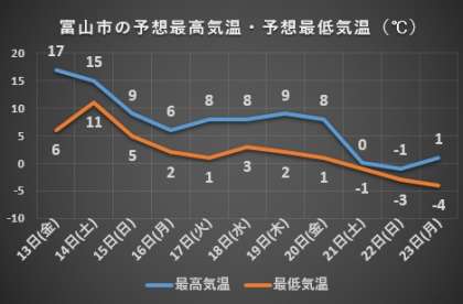 また、今週は例年の冬とは異なり、雪のない暖かな日が続いています。気象庁によると、この後少しずつ気温が下がり、来週末には雪が降り続く真冬日となるようです。寒暖差が激しく、体調管理が難しい状況となりますのでご注意ください。