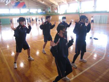 ダンスの振り付け 1−1体育 公開日 2023/01/17 更新日 2023/01/17 学び合い認め合う学習 1月17日(火) 4限 1−1体育の授業風景です。タブレットパソコンで動画を見ながらダンスの振り付けを覚えています。かっこいい!