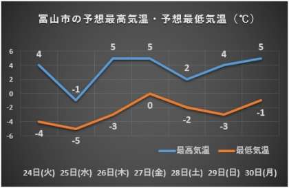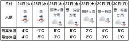気象庁によると、24日(火)夕方からは降雪が強まり、短時間で積雪が急激に増えるおそれがあり、冬型の気圧配置の強まりの程度によっては山間部だけでなく、平地でも警報級の大雪となる可能性があるということです。安心・安全な生活を第一に、「準備万端整える」「時間にゆとりをもつ」「周りをよく見る」「無理をしない」など、降雪・積雪、凍結時の行動には細心の注意をはらいましょう。