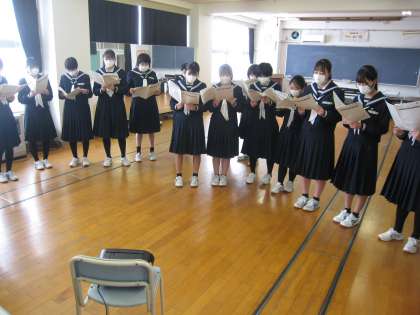 卒業式の歌練習 3−2音楽 公開日 2023/01/25 更新日 2023/01/25 学び合い認め合う学習 1月25日(水) 2限 3−2音楽の授業風景です。卒業式に歌う合唱を音声パート別に練習しています。曲名は「遙か」。最高の歌をつくりあげましょう!