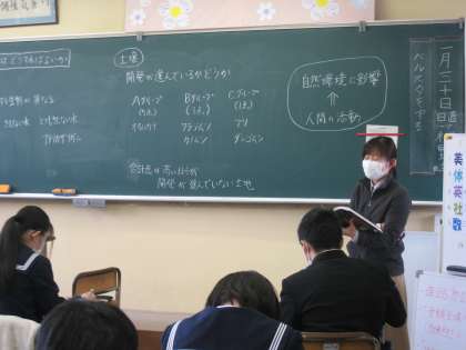 自然環境について 3−1理科 公開日 2023/01/30 更新日 2023/01/30 学び合い認め合う学習 1月30日(月) 5限 3−1理科の授業風景です。自然環境の成り立ちについて学習しています。虫や微生物が生息できる環境が、よい土壌を生むそうです。