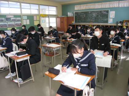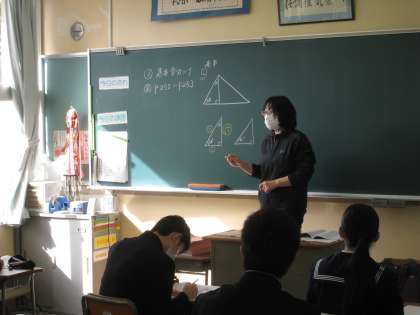 3−1数学の授業風景です。三平方の定理について学習しています。私立高校入試まで残り2日。がんばりましょう!