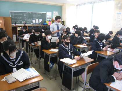 図形の定理・定義について 2−1数学 公開日 2023/02/09 更新日 2023/02/09 学び合い認め合う学習 2月9日(木) 4限 2−1数学の受業風景です。図形の定理や定義について学習しています。何度も声を出しながら覚えています。
