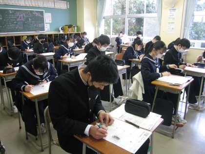 比例・反比例・一次関数 3−1数学 公開日 2023/02/13 更新日 2023/02/13 学び合い認め合う学習 2月13日(月) 4限 3−1数学の受業風景です。比例・反比例・一次関数について学習しています。もう一度しっかりと復習しましょう。