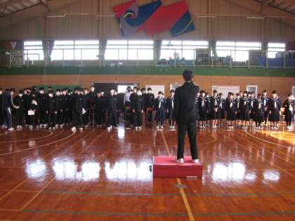 卒業式の合唱練習 1,2年 公開日 2023/03/09 更新日 2023/03/09 その他 3月9日(木) 1限 1,2年生合同で卒業式の合唱練習を行いました。最初は音声パート別に分かれて練習し、最後は体育館でみんなで合わせて歌いました。3年生の先輩方へ感謝の気持ちを込めて歌いましょう!