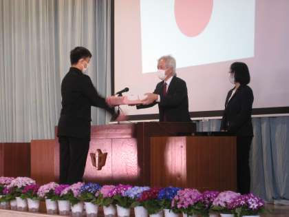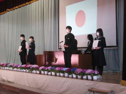 月岡中学校同窓会の入会式が行われました。今年度で同窓会会員数は6842名になりました。これからも月岡中学校の卒業生であることに誇りをもって社会に羽ばたいていってください。