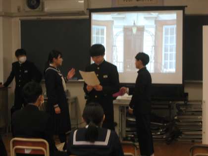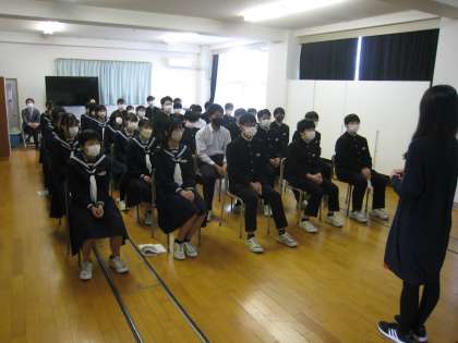 二学年集会 公開日 2023/03/23 更新日 2023/03/23 学び合い認め合う学習 3月23日(木) 4限 二学年が今年度最後の学年集会を行いました。英語での劇、MVP表彰等、今年度の総括をしました。次は最高学年。期待しています!