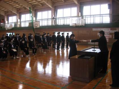 修了式 公開日 2023/03/24 更新日 2023/03/24 その他 3月24日(金) 1,2限 修了式の様子です。各学年の代表者へ修了書が手渡されました。校長先生からは、「チェンジはチャンス。充実した春休みを過ごして、新年度さらに輝けるようにがんばってほしい」とのお言葉をいただきました。 (写真上:校長先生 中:1学年 下:2学年)