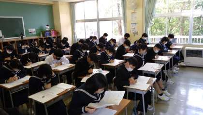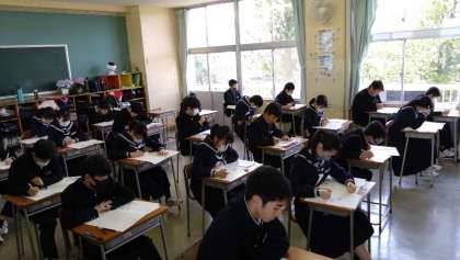 4月11日(火)中教研学力調査【2・3年生】 公開日 2023/04/11 更新日 2023/04/11 学び合い認め合う学習 4月11日(火)・12日(水)の2日間、富山県内一斉に中教研学力調査が実施されています。生徒たちは昨年度までの学習内容を思い出しながら、一生懸命に問題を解いていました。 (上:2年1組 中:2年2組 下:3年1組)