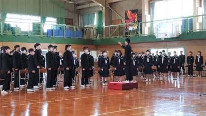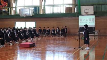 4月11日(火)生徒会入会式(その2) 公開日 2023/04/11 更新日 2023/04/11 学び合い認め合う学習 2・3年生は力強い歌声で、1年生に思いを伝えました。 全校生徒が心を一つにして輝き続ける月岡中学校を創っていきましょう! (上・中:2・3年生による合唱 下:新入生代表の挨拶)