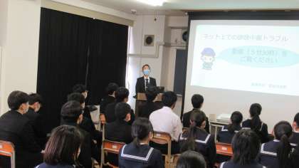 本日6限に3年生を対象とした情報モラル講座を行いました。ネット社会である現代において、便利で生活に欠かせないSNS。インターネットに関する犯罪やトラブルを防止し、安心・安全にインターネットを利用するための知識について講師の先生から講義を受けました。