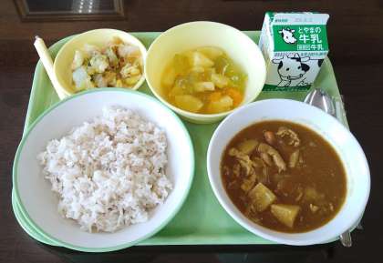 給食メニューで定番の「カレーライス」と「フルーツゼリーミックス」は待ち遠しいメニューの1つですね。