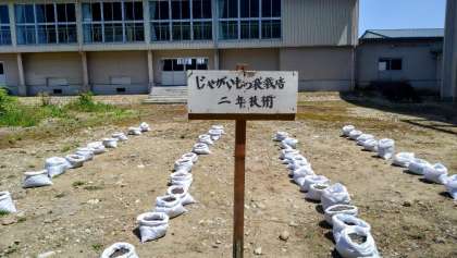 5月2日(火)2年技術「じゃがいもの袋栽培」 公開日 2023/05/02 更新日 2023/05/02 学び合い認め合う学習 2年生の技術科では、じゃがいもの袋栽培の授業を行っています。現在、中庭には一人一人の栽培用の袋が置かれており、収穫に向けて毎日お世話をしながら学習を進めていきます。