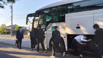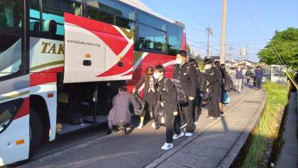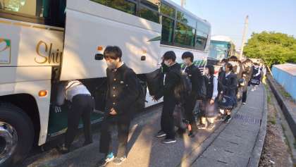 いよいよバス乗車。2泊3日の関西方面修学旅行がスタートします。