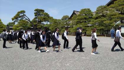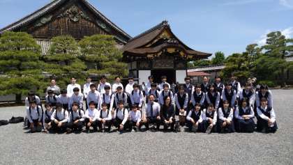 5月10日(水)修学旅行 −二条城− 公開日 2023/05/10 更新日 2023/05/10 学び合い認め合う学習 記念撮影をし、いよいよ二条城の中に入ります。徳川慶喜が行なった大政奉還の地を実際に自分の目で見てきます。
