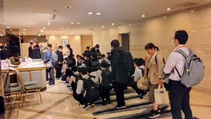 5月10日(水)修学旅行 −ホテル到着− 公開日 2023/05/10 更新日 2023/05/10 学び合い認め合う学習 予定通り20時30分前にホテルに到着しました。ホテルの方や先生方から留意事項を聞き、その後、ルームキーを受け取って部屋に入りました。