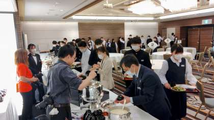 5月11日(木)修学旅行 −朝食− 公開日 2023/05/11 更新日 2023/05/11 学び合い認め合う学習 おはようございます! 修学旅行第2日、ホテルのバイキング朝食です。 体調不良はありません。参加者全員、元気に朝食を「いただきます!」