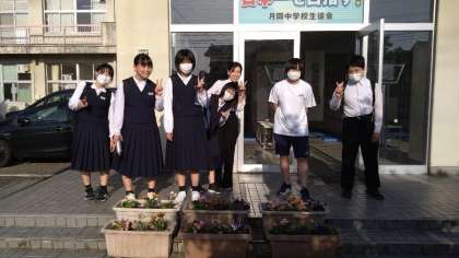 5月16日(火)部活動も終了時刻が近付き・・・(その1) 公開日 2023/05/16 更新日 2023/05/16 その他 グラウンドでは陸上競技部がクールダウンを、体育館ではバドミントン部が床のモッピングを行っていました。次回の練習につなげるための「当たり前」をしっかり実践しています。 活動が終わった美術部員等が生徒玄関前にやってきました。目の前のきれいな花を見て・・・、先生と一緒に「はい、ポーズ!」