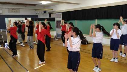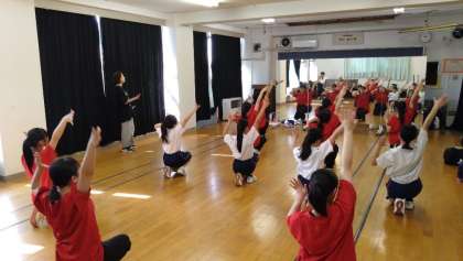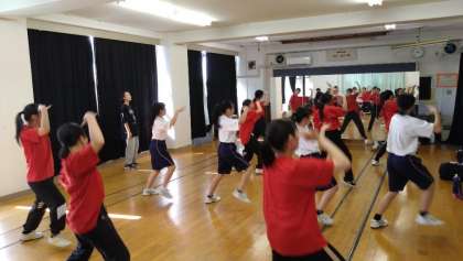 音楽に合わせて通し練習をしています。笑顔と躍動感でいっぱいです!