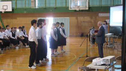 月岡中学校「川柳甲子園」の様子です。