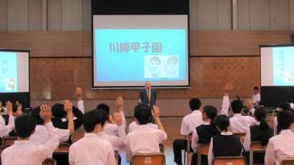 月岡中学校「川柳甲子園」の様子です。